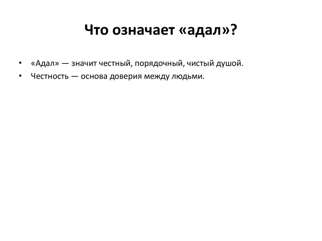 Что означает «адал»?• «Адал» — значит честный, порядочный, чистый душой.