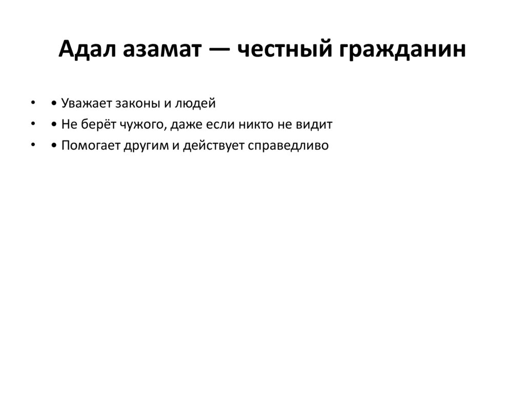 Адал азамат — честный гражданин• • Уважает законы и людей