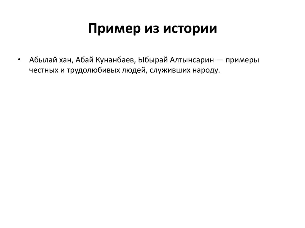 Пример из истории• Абылай хан, Абай Кунанбаев, Ыбырай Алтынсарин — примеры