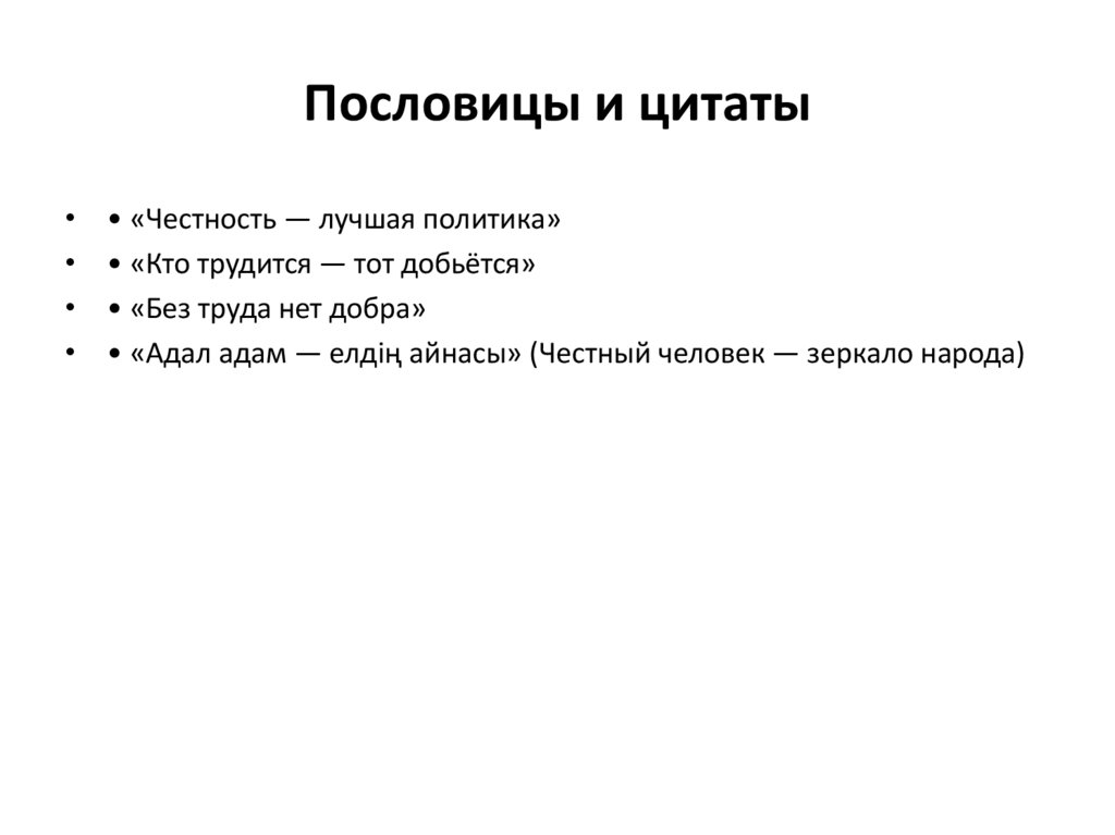 • «Адал адам — елдің айнасы» (Честный человек — зеркало народа)