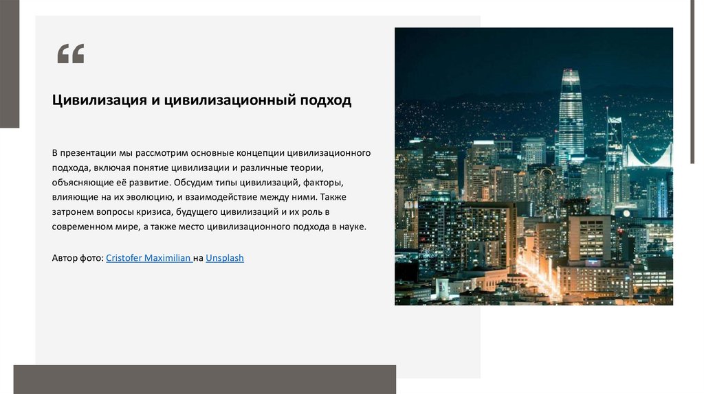 Цивилизация и цивилизационный подходВ презентации мы рассмотрим основные концепции цивилизационного