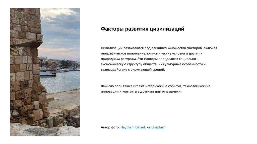 Факторы развития цивилизацийЦивилизации развиваются под влиянием множества факторов, включая