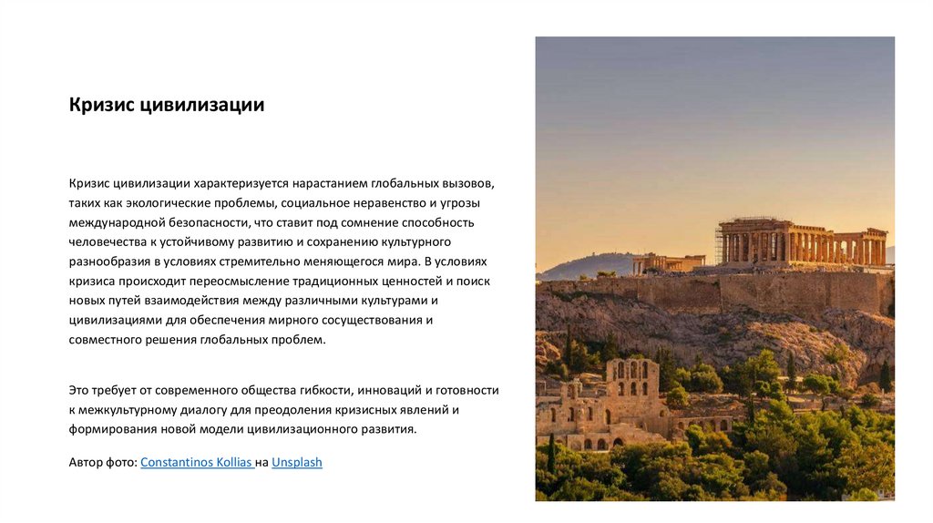 Роль цивилизации в современном миреЦивилизация в современном мире представляет собой сложную систему