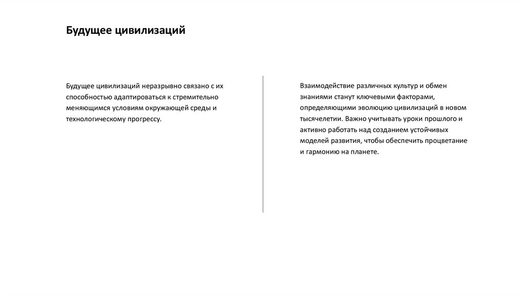 Будущее цивилизацийБудущее цивилизаций неразрывно связано с их