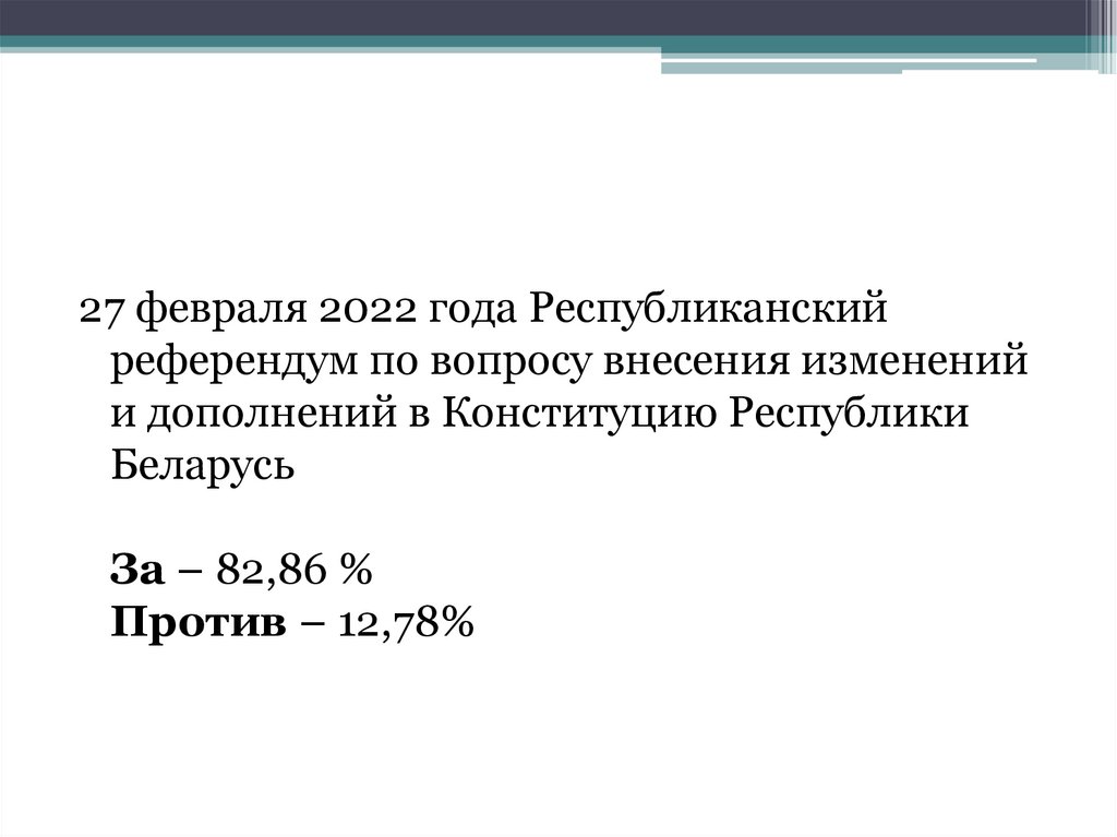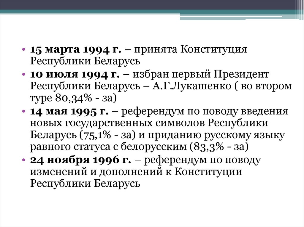 • 15 марта 1994 г. – принята КонституцияРеспублики Беларусь