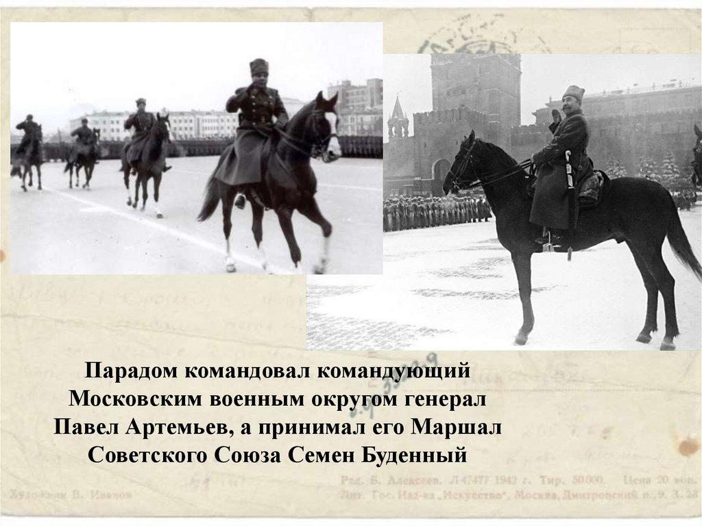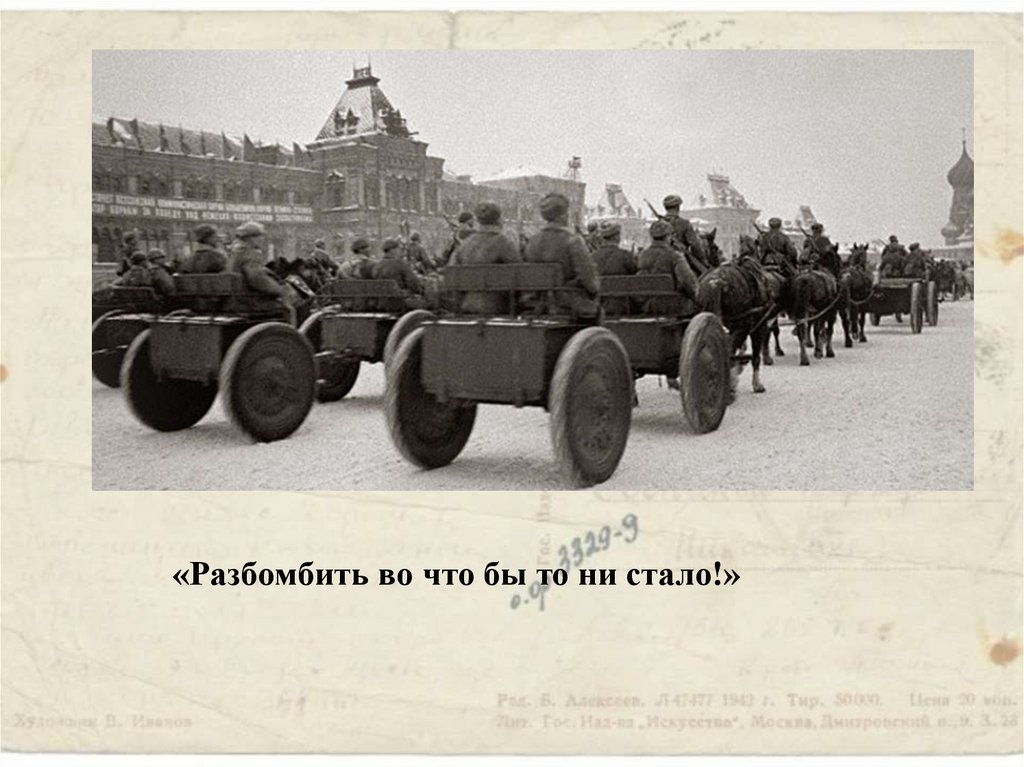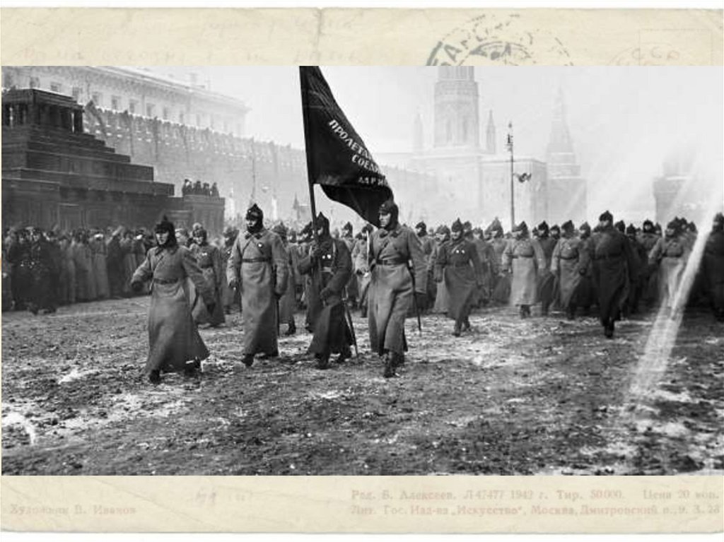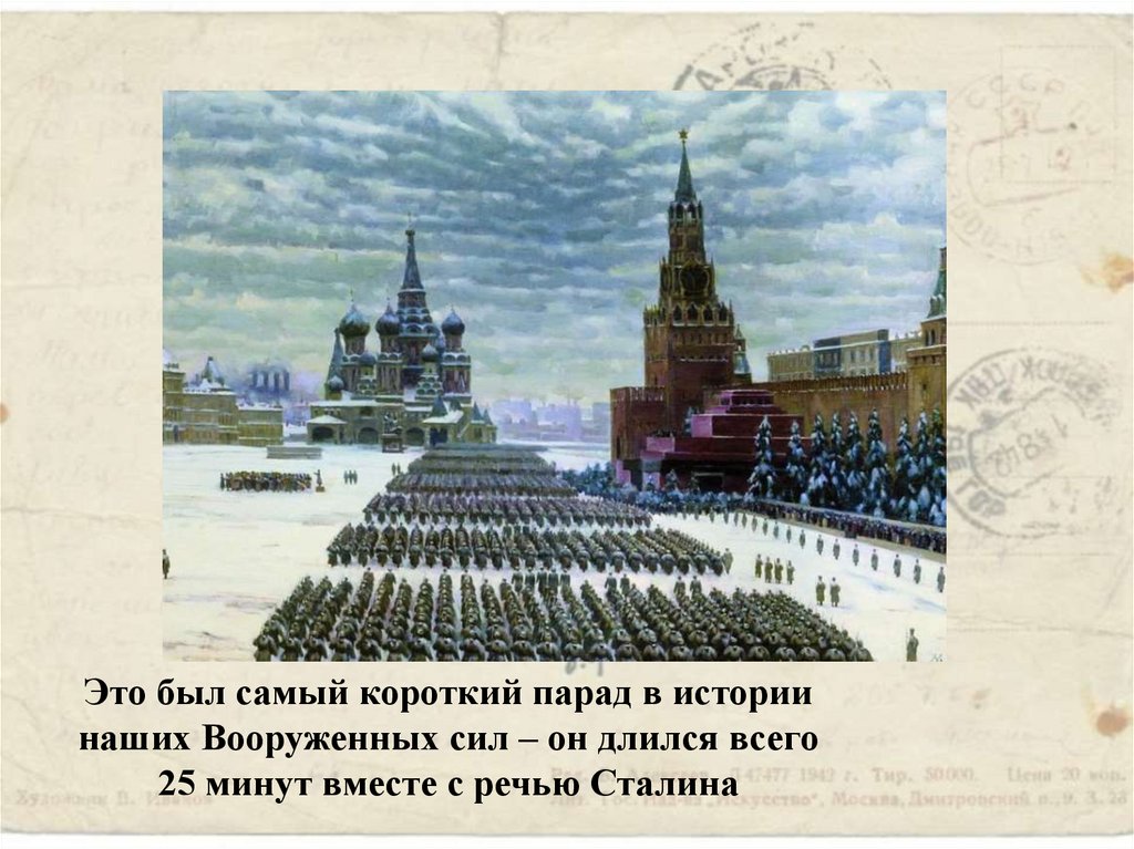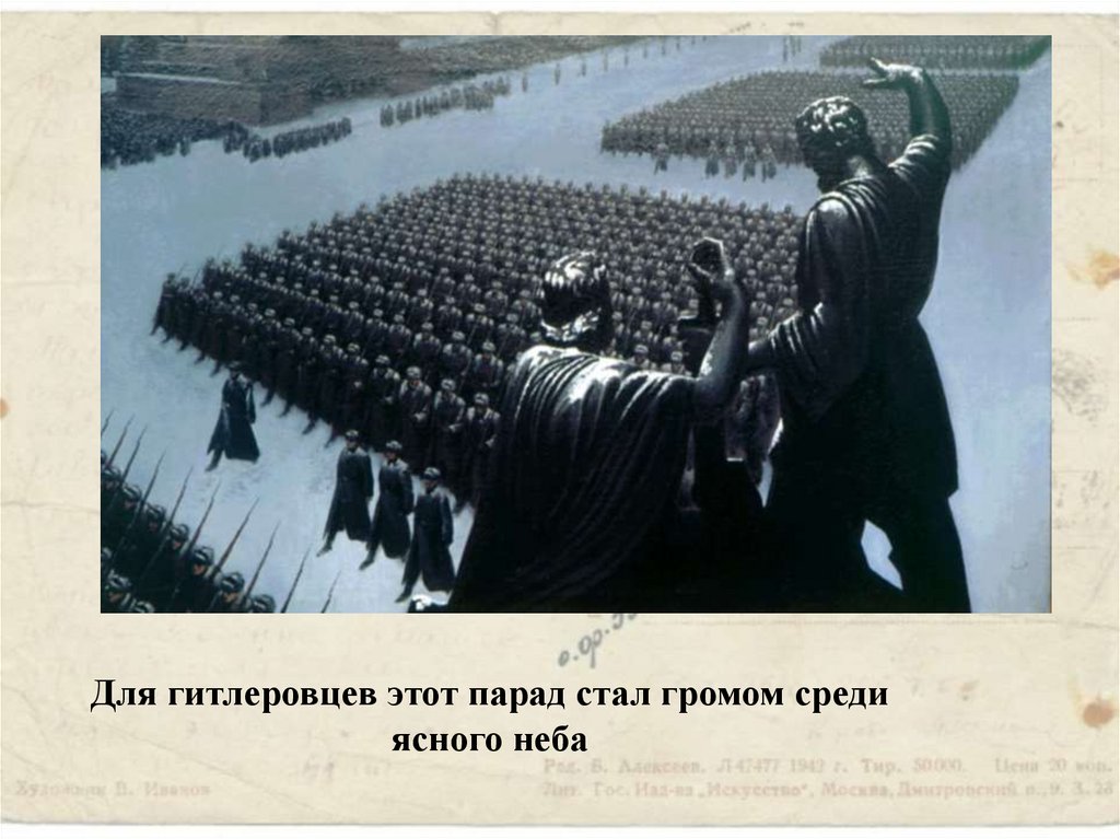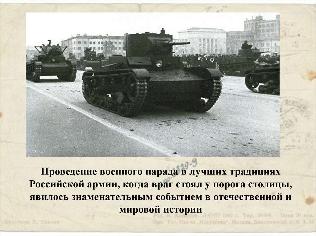 Проведение военного парада в лучших традицияхРоссийской армии, когда враг стоял у порога столицы,