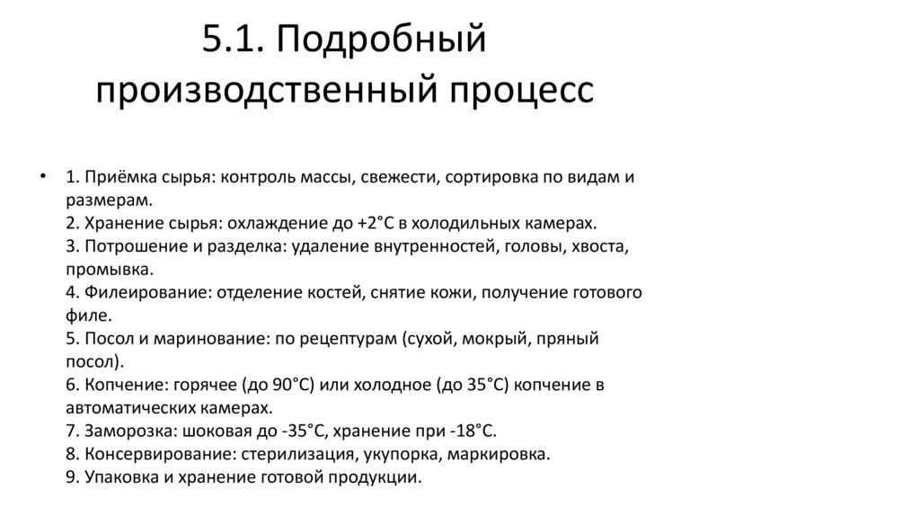 • 1. Приёмка сырья: контроль массы, свежести, сортировка по видам и