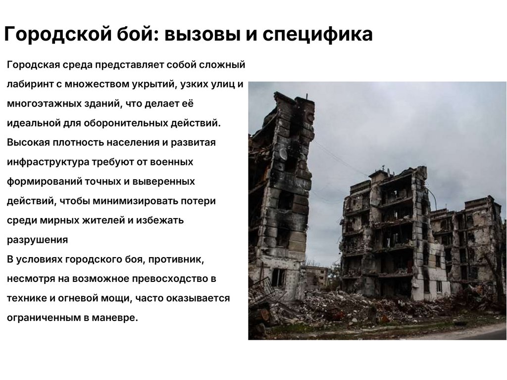 Городской бой: вызовы и спецификаГородская среда представляет собой сложный