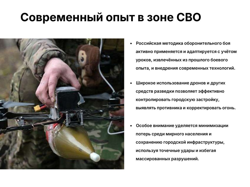Современный опыт в зоне СВО• Российская методика оборонительного боя
