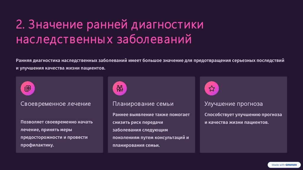 2. Значение ранней диагностикинаследственны х заболеваний