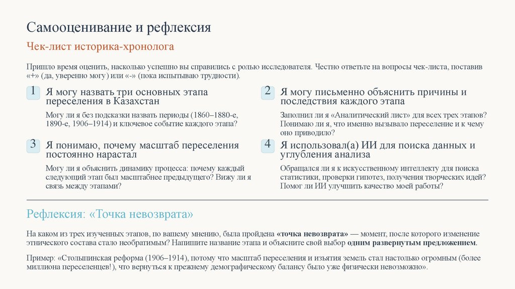 Самооценивание и рефлексияЧек-лист историка-хронолога