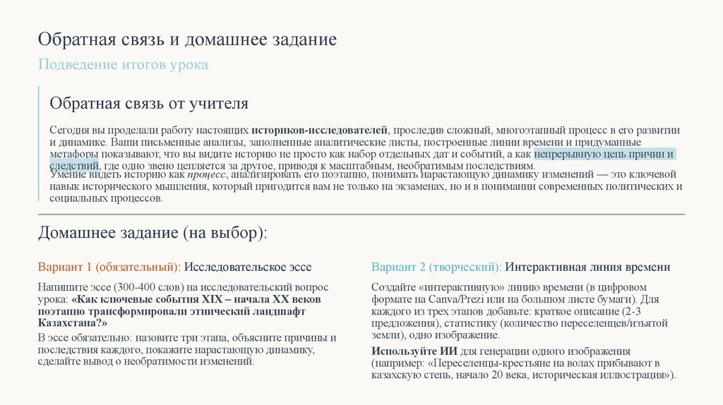 Сегодня вы проделали работу настоящих историков-исследователей, проследив сложный, многоэтапный процесс в его развитии
