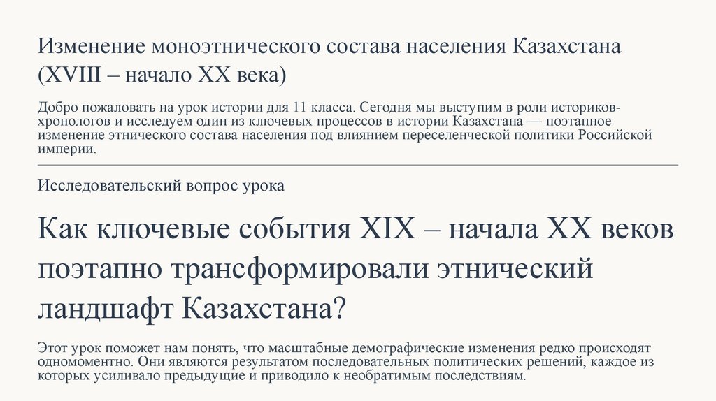11ИК_2 урок_Изменение моноэтнического состава населения Казахстана (XVIII – начало ХХ века)
