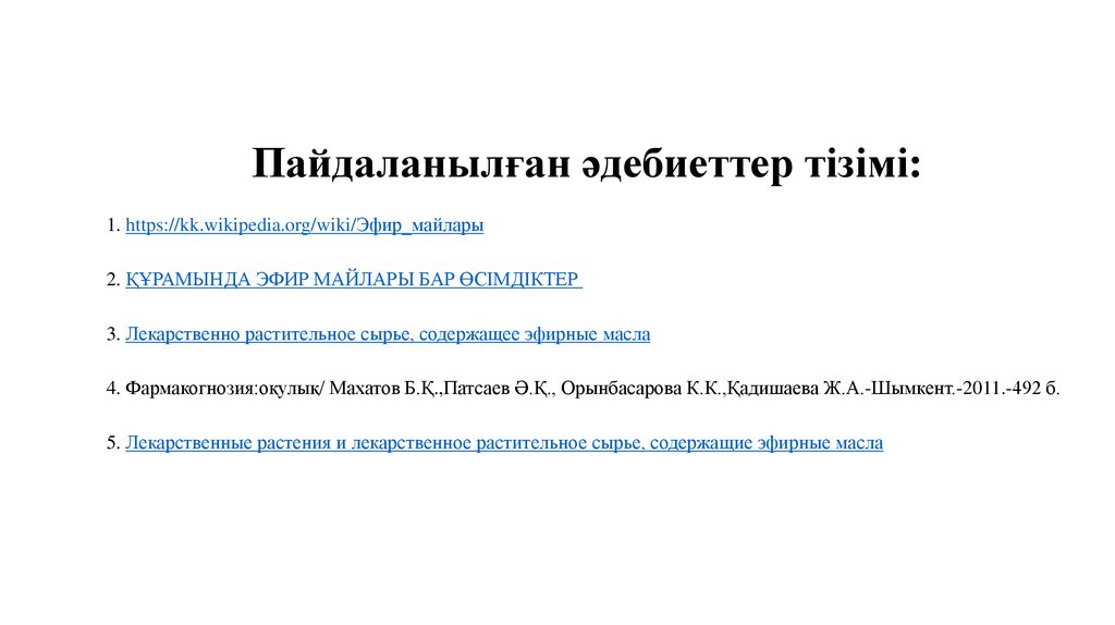 Пайдаланылған әдебиеттер тізімі:1. https://kk.wikipedia.org/wiki/Эфир_майлары