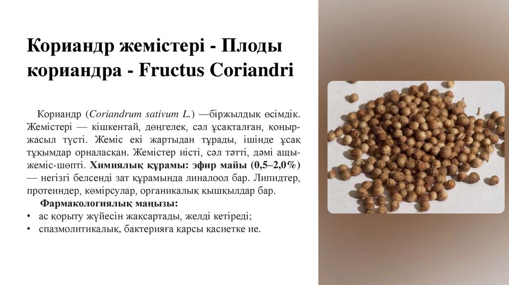 Кориандр жемістері - Плодыкориандра - Fructus Coriandri