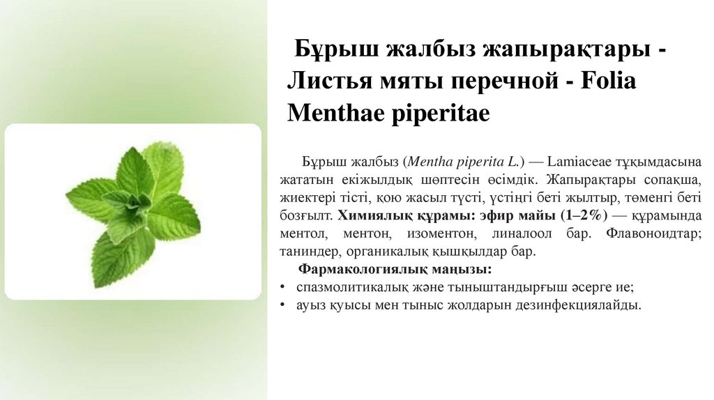Бұрыш жалбыз жапырақтары Листья мяты перечной - FoliaMenthae piperitae