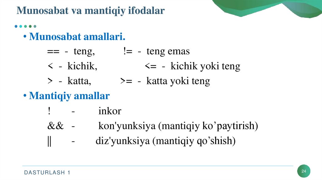• Mantiqiy amallar