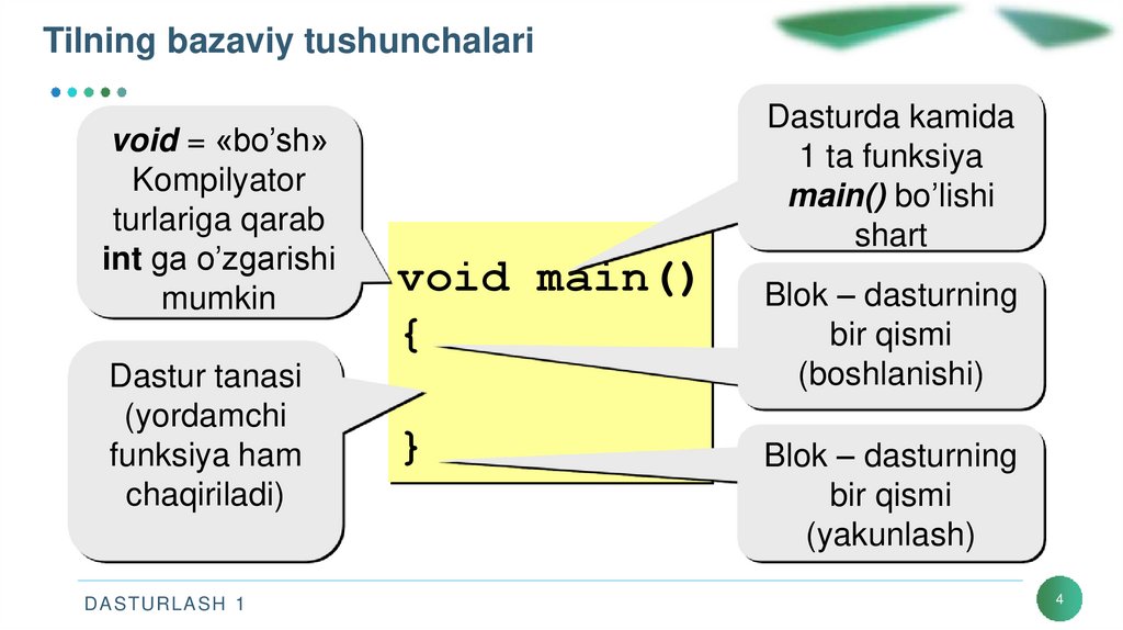 Tilning bazaviy tushunchalarivoid = «bo’sh»