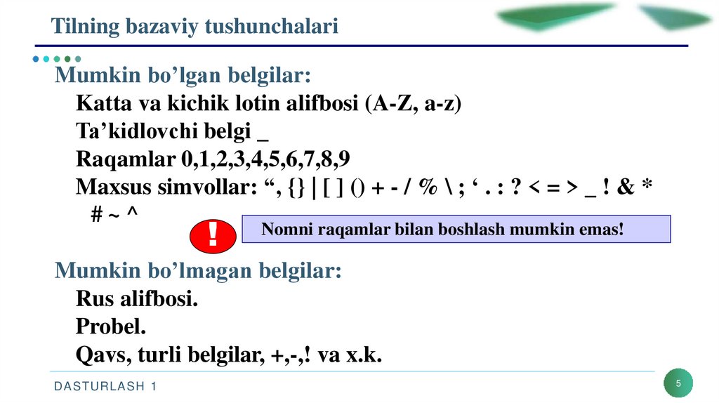 Tilning bazaviy tushunchalariMumkin bo’lgan belgilar: