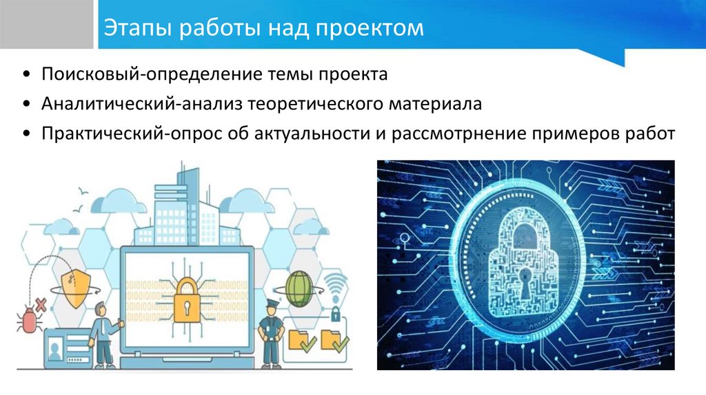 Этапы работы над проектом• Поисковый-определение темы проекта