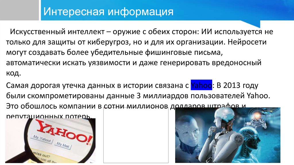 Интересная информацияИскусственный интеллект – оружие с обеих сторон: ИИ используется не