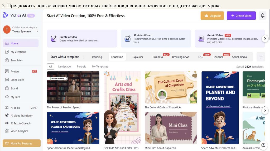 2. Предложить пользователю массу готовых шаблонов для использования в подготовке для урока