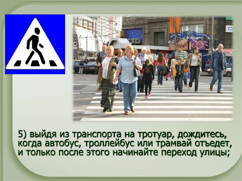 5) выйдя из транспорта на тротуар, дождитесь,когда автобус, троллейбус или трамвай отъедет,