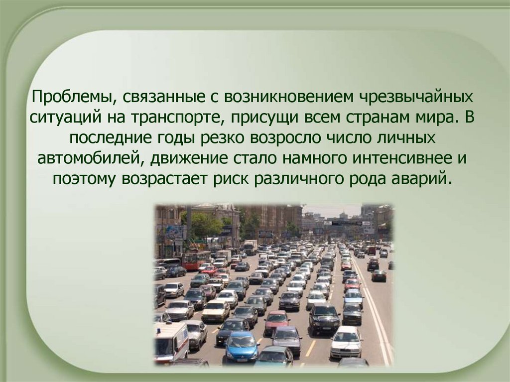 Проблемы, связанные с возникновением чрезвычайныхситуаций на транспорте, присущи всем странам мира. В