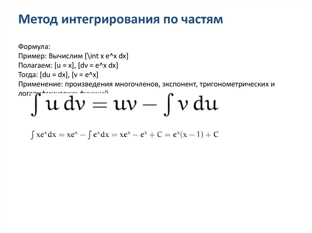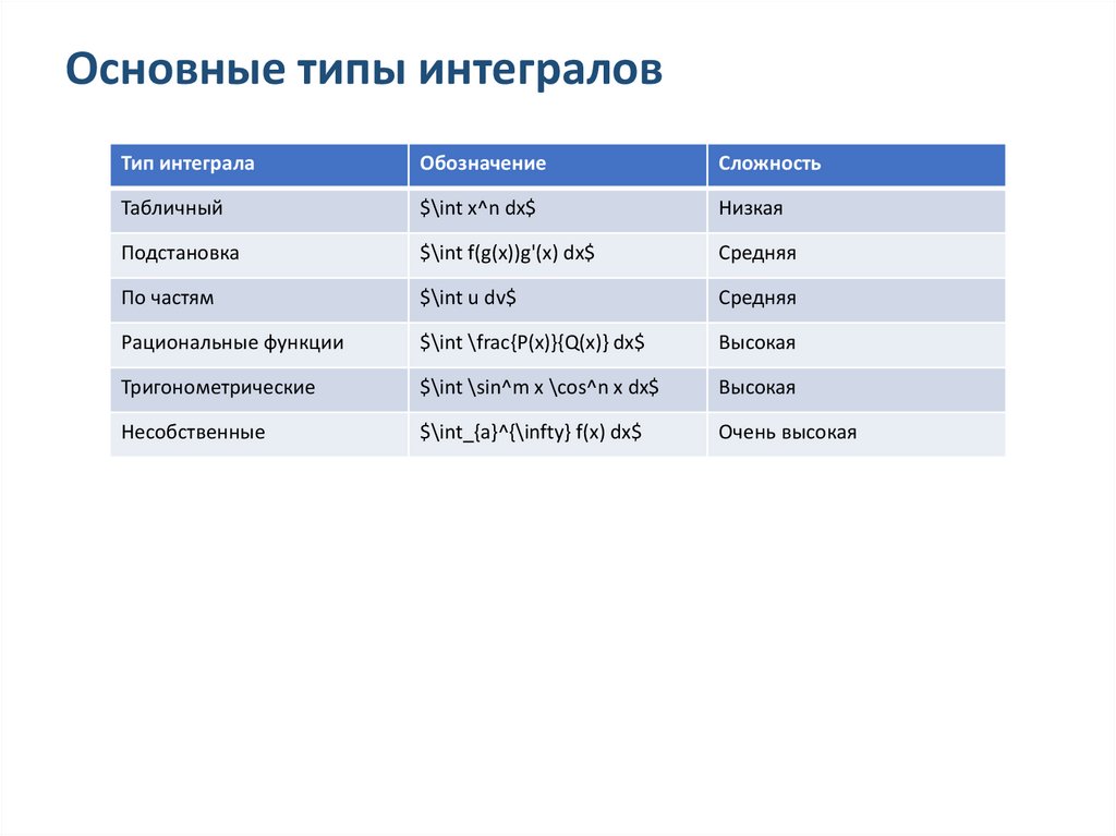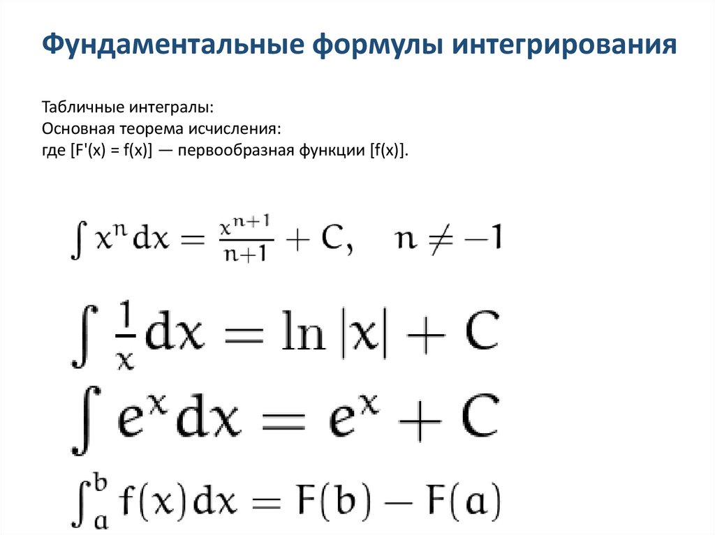 Фундаментальные формулы интегрированияТабличные интегралы: