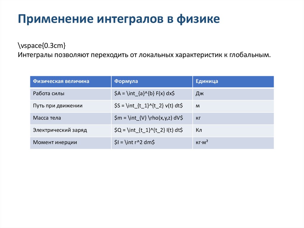 Интегралы позволяют переходить от локальных характеристик к глобальным.