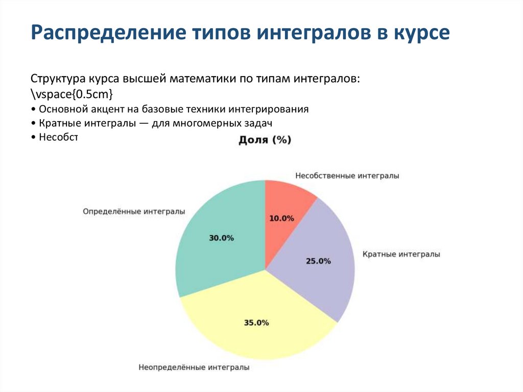 Распределение типов интегралов в курсеСтруктура курса высшей математики по типам интегралов: