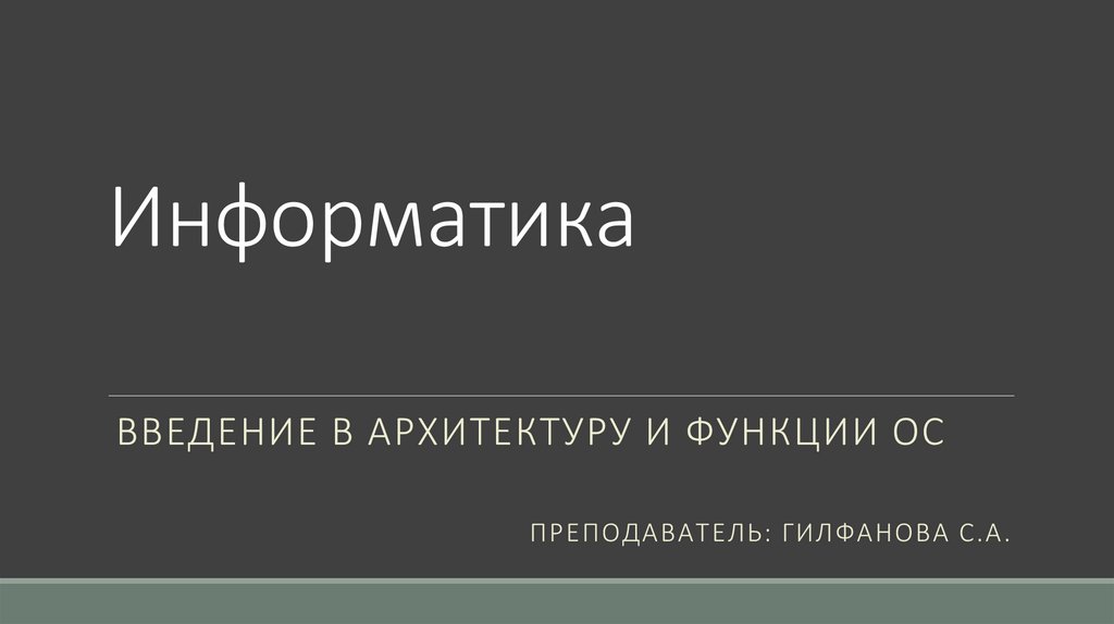 ВВЕДЕНИЕ В АРХИТЕКТУРУ И ФУНКЦИИ ОСПРЕПОДАВАТЕЛЬ: ГИЛФАНОВА С.А.