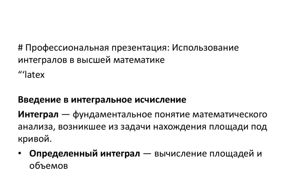 # Профессиональная презентация: Использованиеинтегралов в высшей математике