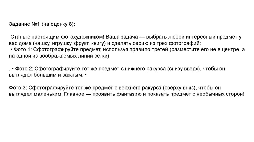 Задание №1 (на оценку 8):Станьте настоящим фотохудожником! Ваша задача — выбрать любой интересный предмет у