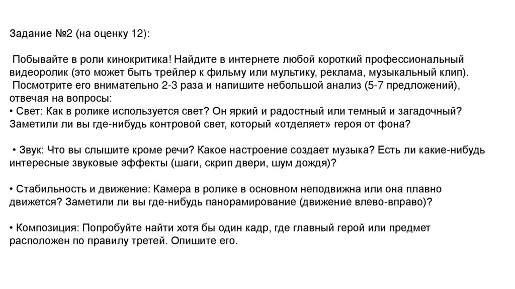 Задание №2 (на оценку 12):Побывайте в роли кинокритика! Найдите в интернете любой короткий профессиональный