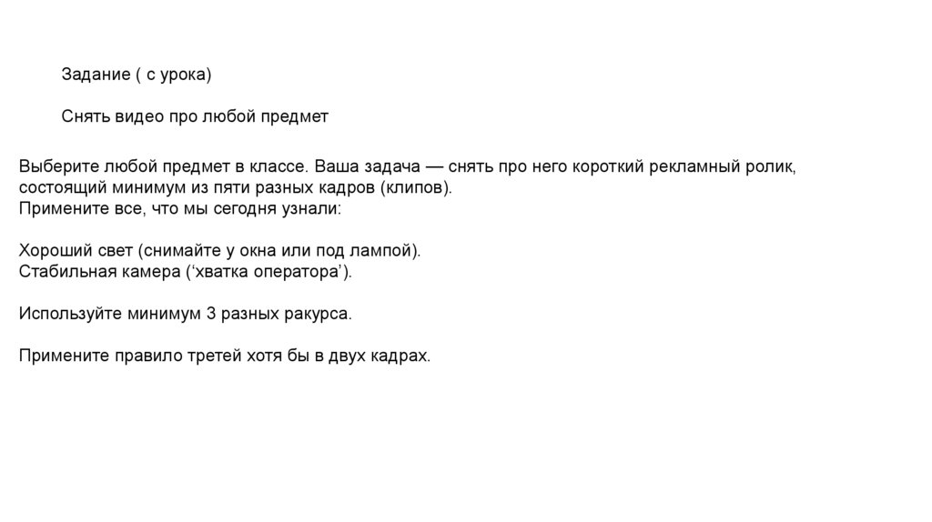 Задание ( с урока)Снять видео про любой предмет
