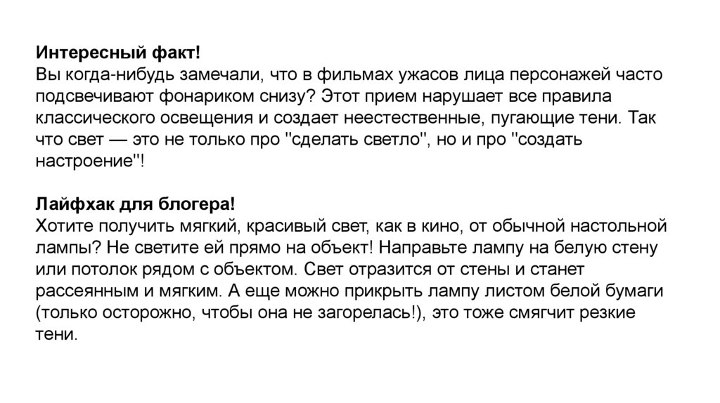 подсвечивают фонариком снизу? Этот прием нарушает все правила