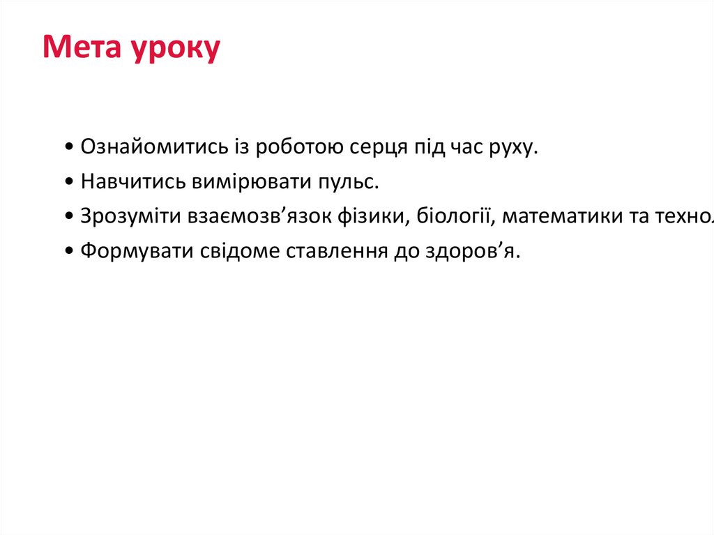 Мета уроку• Ознайомитись із роботою серця під час руху.