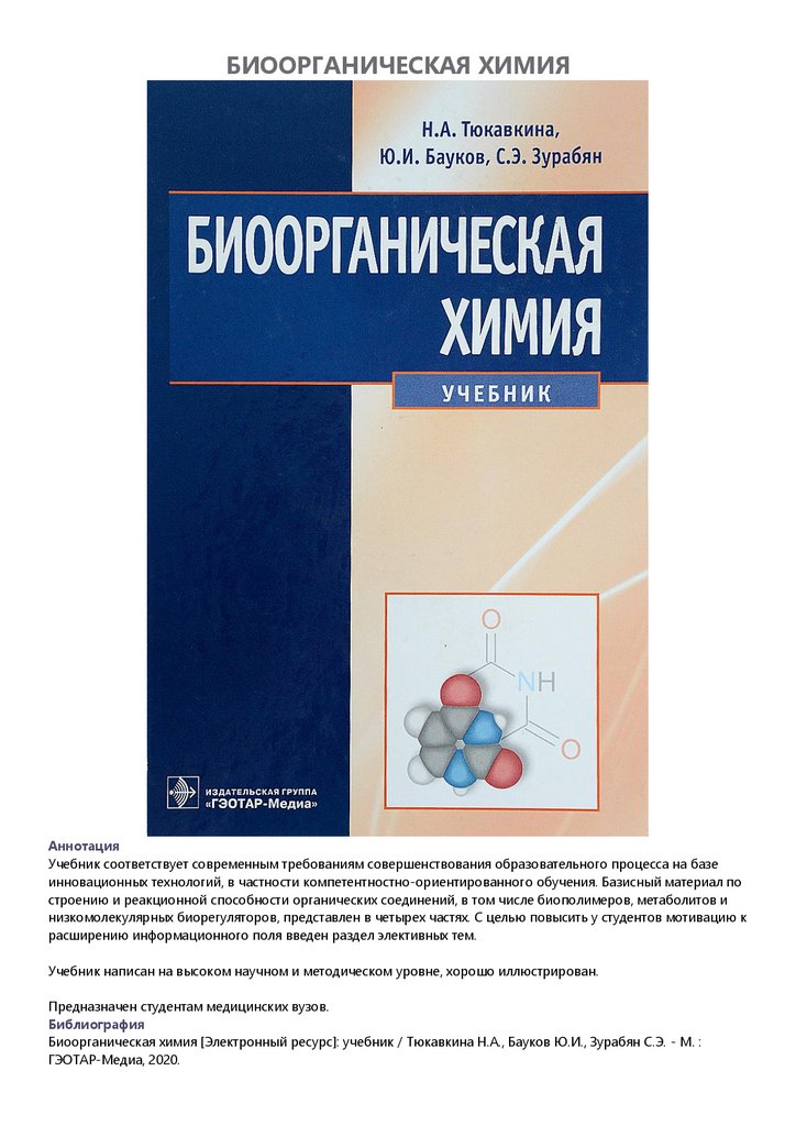 Биоорганическая химия [Электронный ресурс]: учебник / Тюкавкина Н.А., Бауков Ю.И., Зурабян С.Э. - М. :