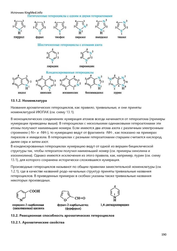 Глава 13. БИОЛОГИЧЕСКИ ВАЖНЫЕ ГЕТЕРОЦИКЛИЧЕСКИЕ СОЕДИНЕНИЯ…………………………………188