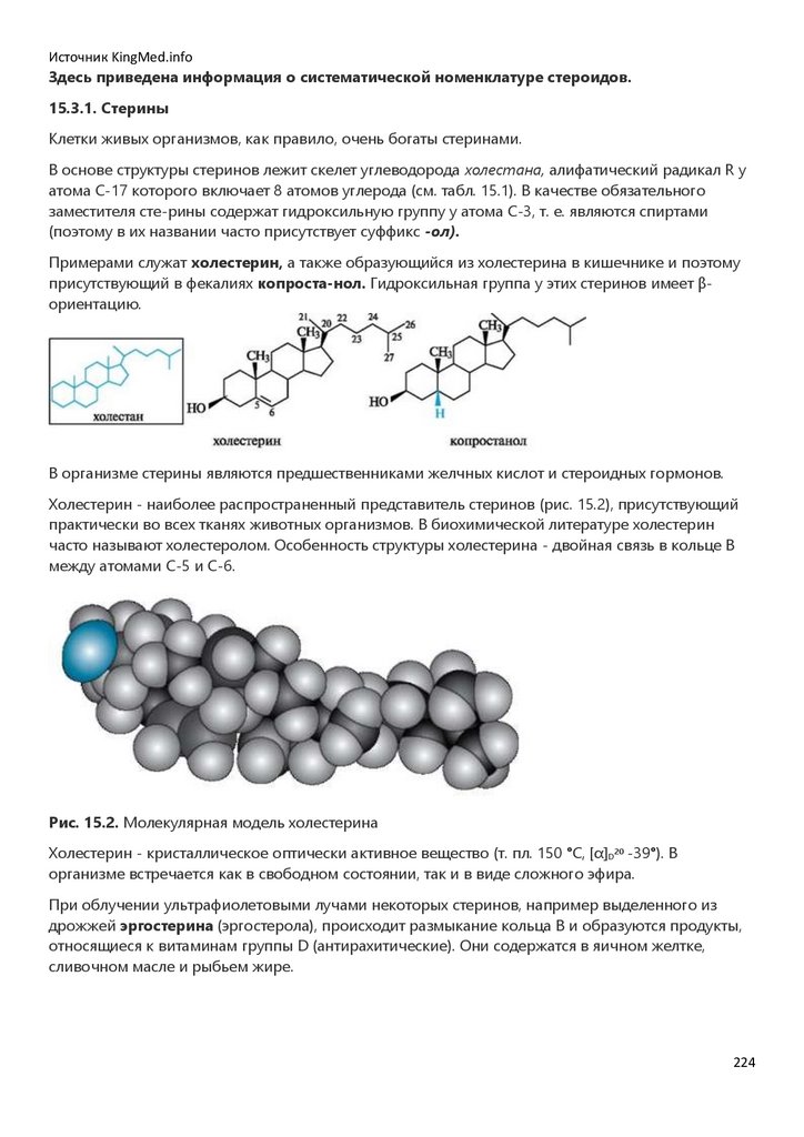 Стерины - производные углеводорода холестана, содержащие гидроксильную группу в качестве