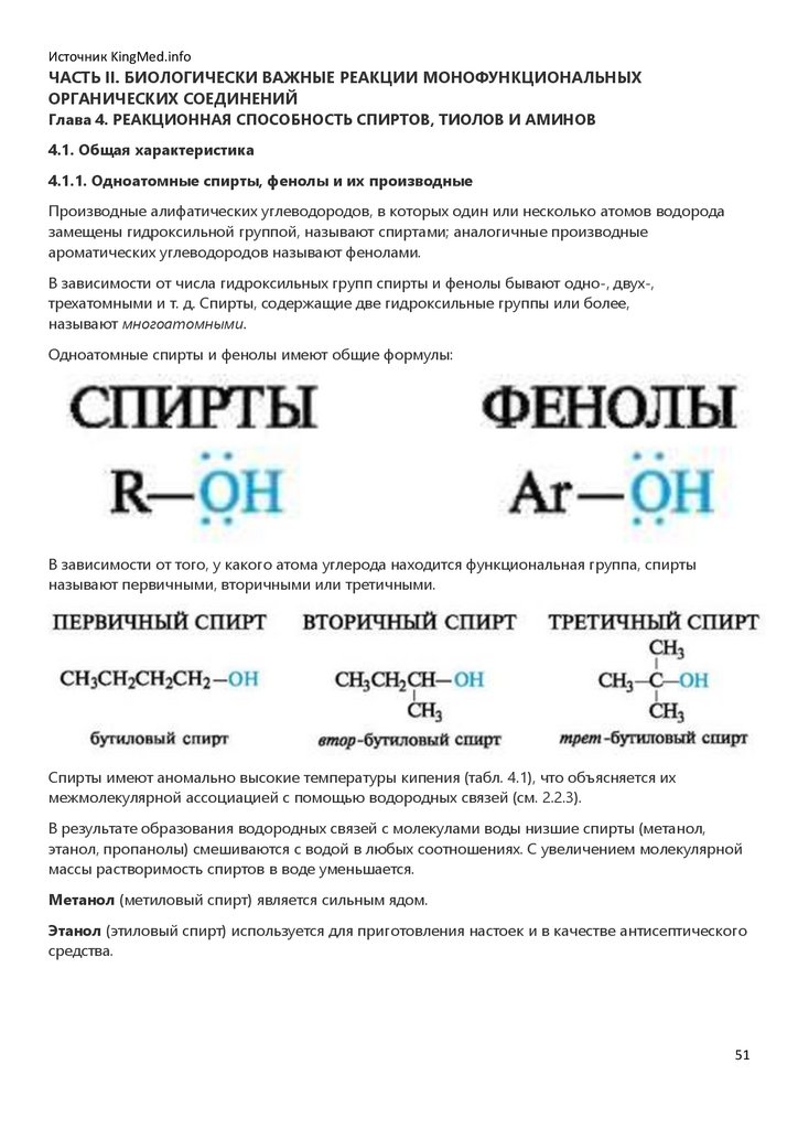 Глава 4. РЕАКЦИОННАЯ СПОСОБНОСТЬ СПИРТОВ, ТИОЛОВ И АМИНОВ……………………………………..51