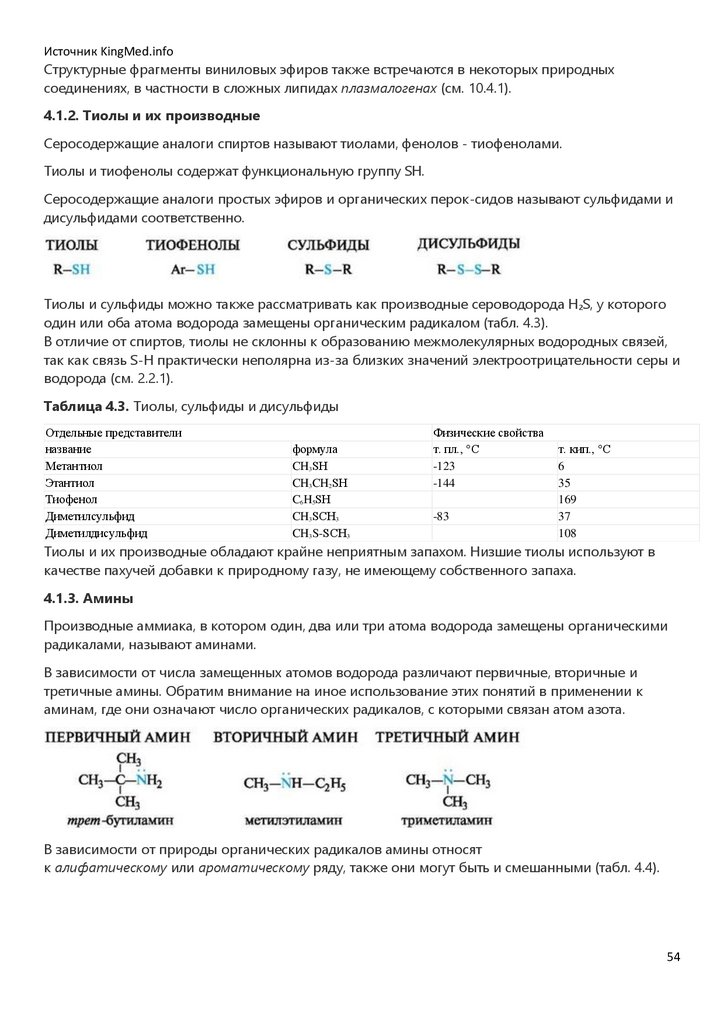 Тиолы RSH - серосодержащие аналоги спиртов.