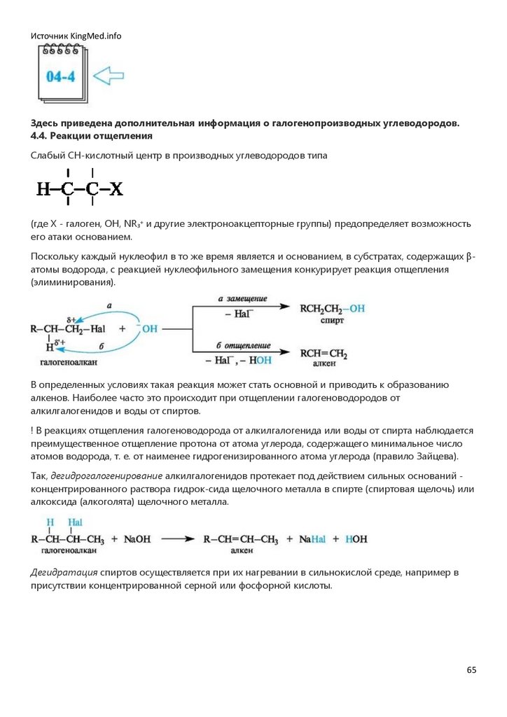 Элиминирование - реакция отщепления от субстрата небольших молекул, например, H2O, HCl,