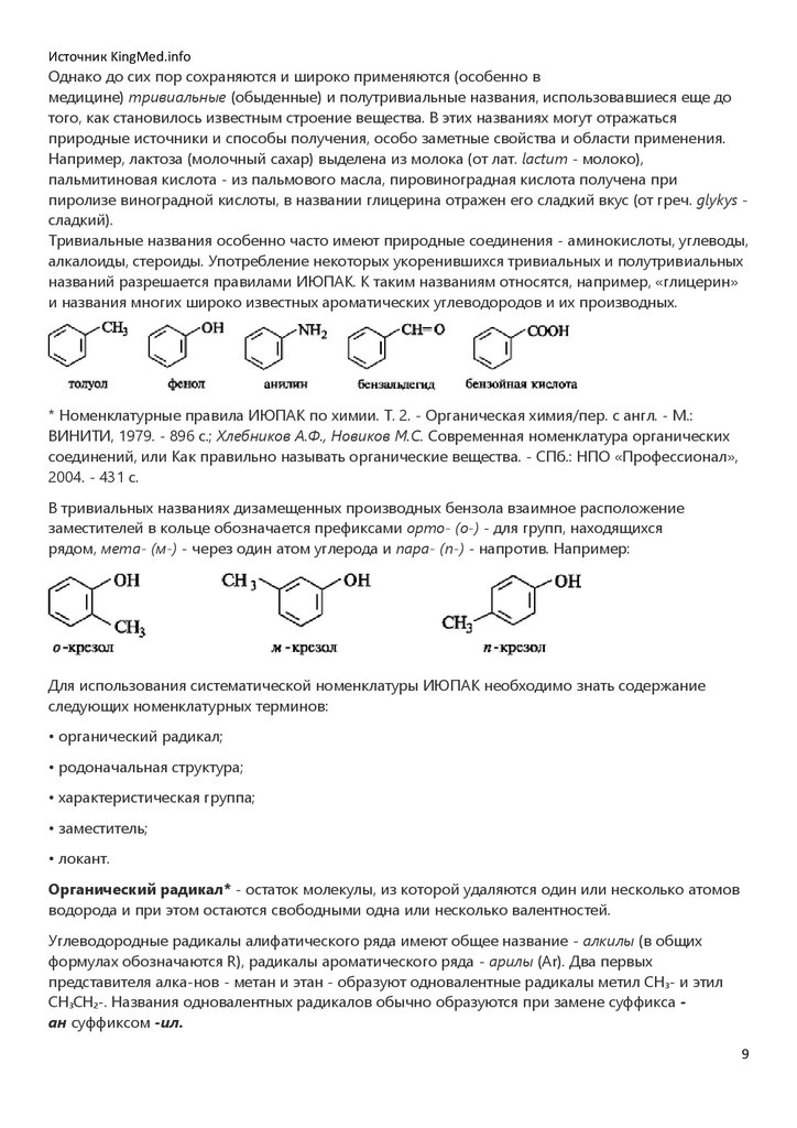 Тривиальные названия - исторически сложившиеся названия соединений, как правило,