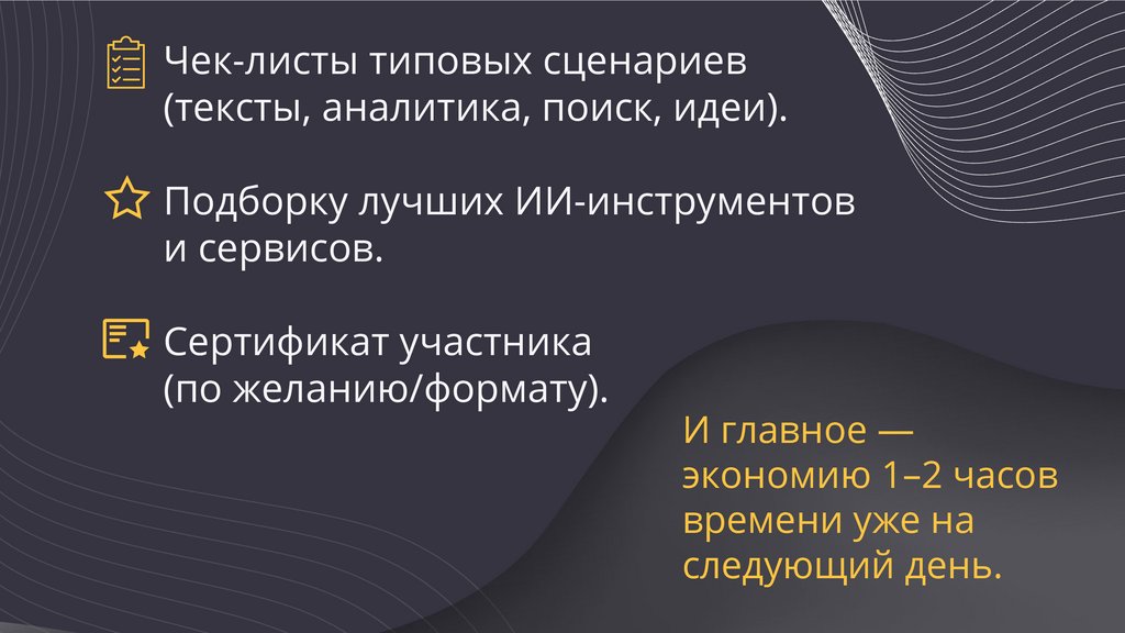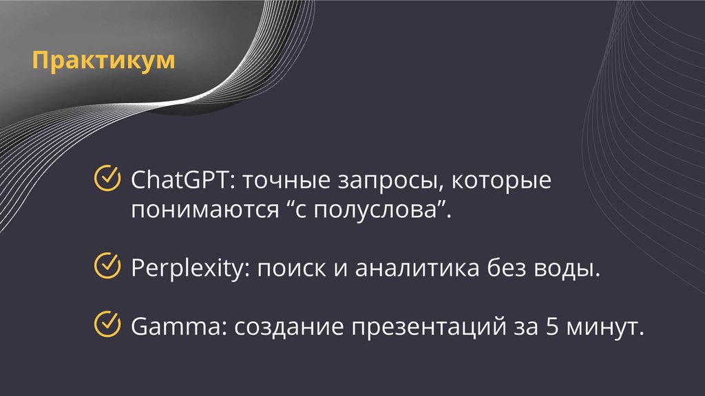 Чек-листы типовых сценариев(тексты, аналитика, поиск, идеи).