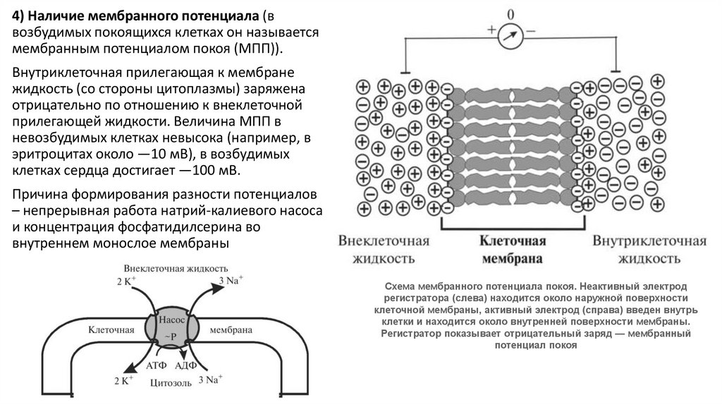 • Смену мембранного потенциала покоя мембранным потенциалом действия (отсутствуют интегральные белки – ионные