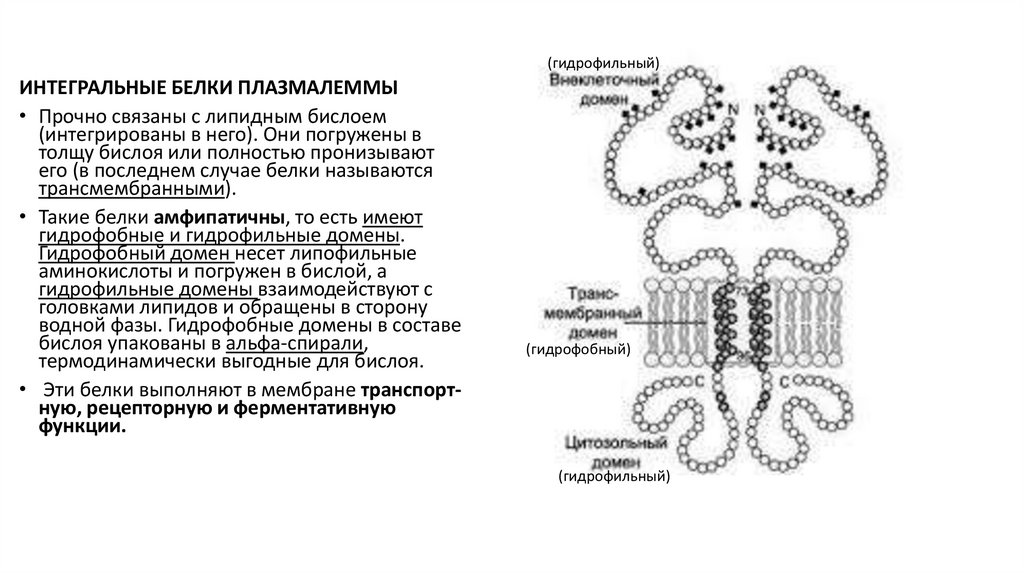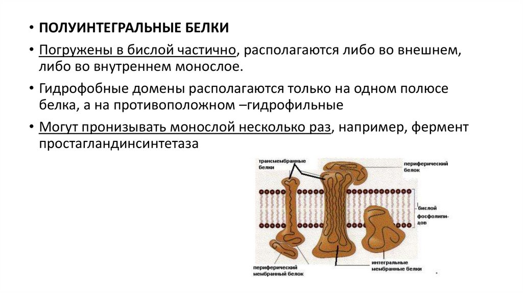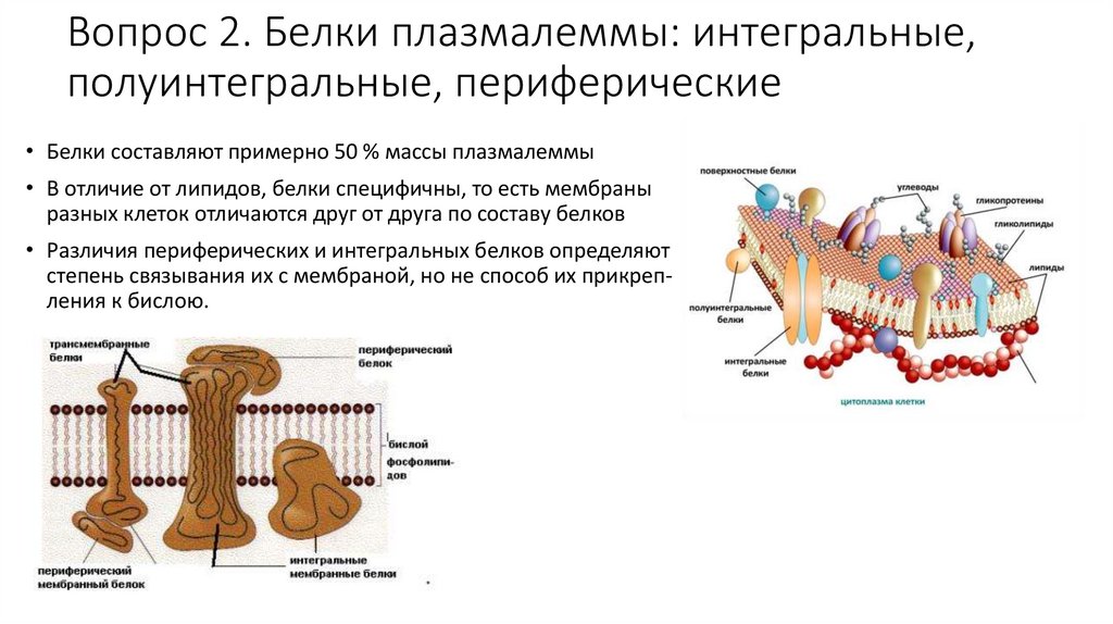2. Белки плазмалеммы: интегральные, полуинтегральные,