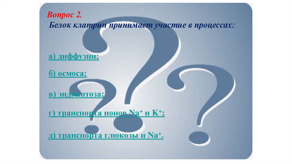 Вопрос 2.Белок клатрин принимает участие в процессах: