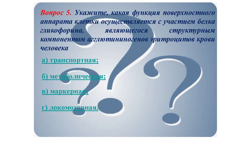 Вопрос 5. Укажите, какая функция поверхностногоаппарата клетки осуществляется с участием белка